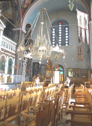 Op het eiland Aigina zijn we al geweest, maar nog niet in Perdeka, een klein plaatsje met een heel leuke uitstraling, dat beschermd achter een landtong van Aigina ligt. Klein, maar met een mooi waterfront. Witte huisjes met rode daken en alleen maar vriendelijke mensen. Een aparte belevenis is onze tocht naar de slager. J e gaat naar links en dan iets verder naar rechts en dan vind je het vanzelf. Maar niet heus. Toch slagen we in de missie en vinden, hoog in het dorp, waar je geen enkele winkel verwacht toch de slager. Een jonge vrouw met een vervaarlijk groot mes, die met twee ferme klappen twee mooie stukken vlees voor ons portionneert. We weten niet wat we gekocht hebben, maar het was meer dan verrukkelijk, nadat we in onze eigen kombuis aan het bakken en braden waren geslagen.