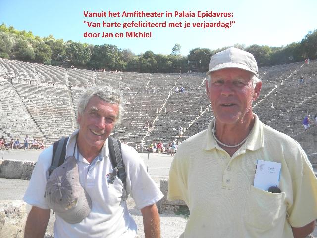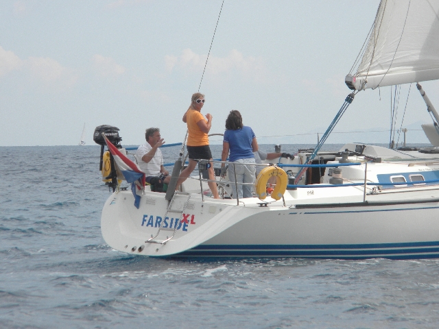 De volgende dag waait het weer hard, maar weer wind mee naar Porós, een populaire plaats op een schiereiland in een geheel beschutte baai. We hebben afgesproken dat we daar Renée en Martin Timmermans zullen ontmoeten die daar met nog een Nederlands echtpaar, Hetty en Frank Gribnau van de Bijl, al een paar dagen liggen. De ontmoeting en het weerzien is geweldig, wat een feest. We kennen Renée en Martin goed van de YSY de watersport vereniging in IJmuiden, waarvan zowel Renée als ikzelf een tijdje voorzitter zijn geweest. Zij varen al zes jaar met hun X-412 "Farside-XL", hier in Griekenland. We hebben hen ook ontmoet in 2009 toen ik samen met Jacques Kellermann Slotemaker in Athene was ter voorbereiding op de IFDS Worlds in 2010, die we onder de vlag van de KNZ&RV in Medemblik organiseerden. Frank en Hetty Gribnau van de Bijl kennen Jacques weer goed en lagen, met zijn aanbeveling, een tijdje met hun Beneteau 42 "Aeolus" als gast in onze haven in Muiden. Zo blijkt de wereld weer eens heel klein te zijn. We wonen uiteindelijk toch weer allemaal in hetzelfde dorp en dat maakt het leven, zeker nu weer, erg aangenaam.